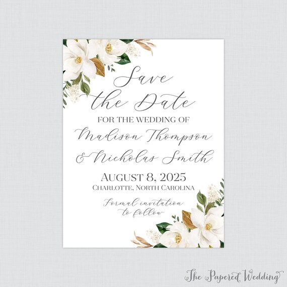 Source : www.timberrockvillage.comPrintable OR Printed Magnolia Save the Date Cards Save the Date
